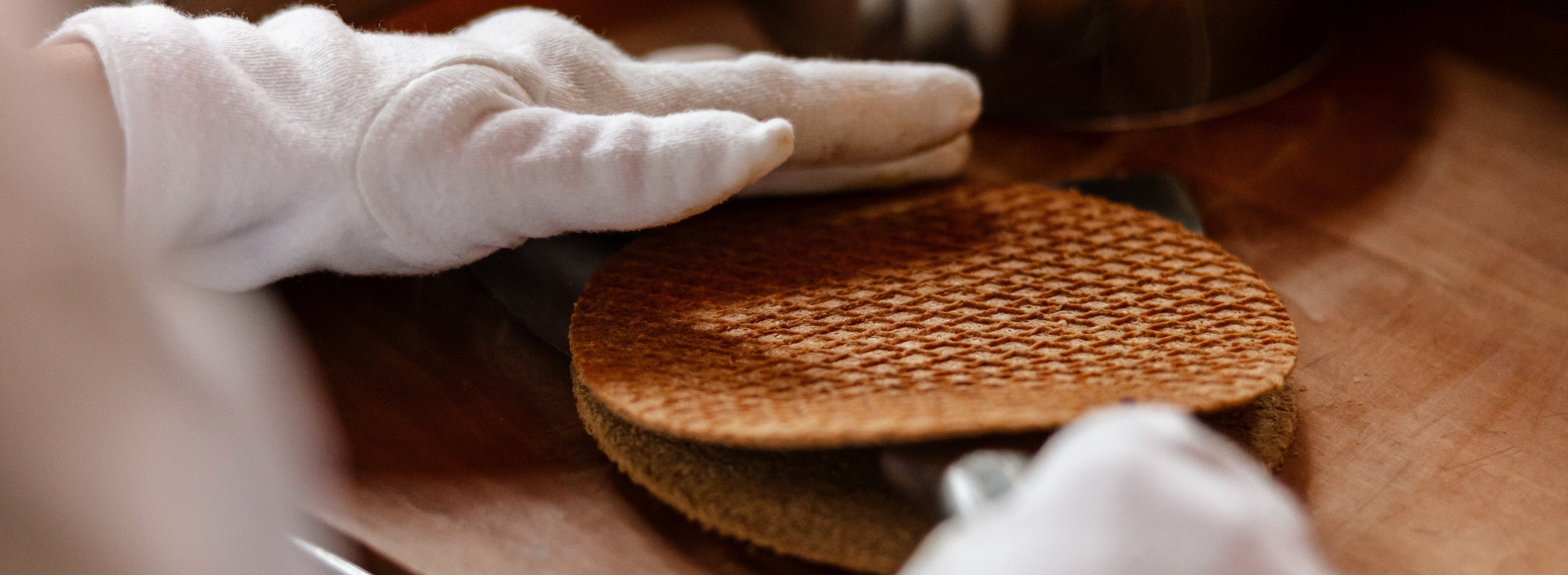 Direct na het bakken, terwijl de wafel nog warm is, wordt hij in een perfecte cirkel gedrukt. Zo krijgt elke stroopwafel zijn herkenbare, traditionele vorm.